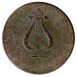 Впервые изображение на плоских медных пуговицах мундиров чиновников Академии художеств появляется в 1800-м году. Это был рисунок «лиры Аполлоновой «в сиянии («в лучах»).